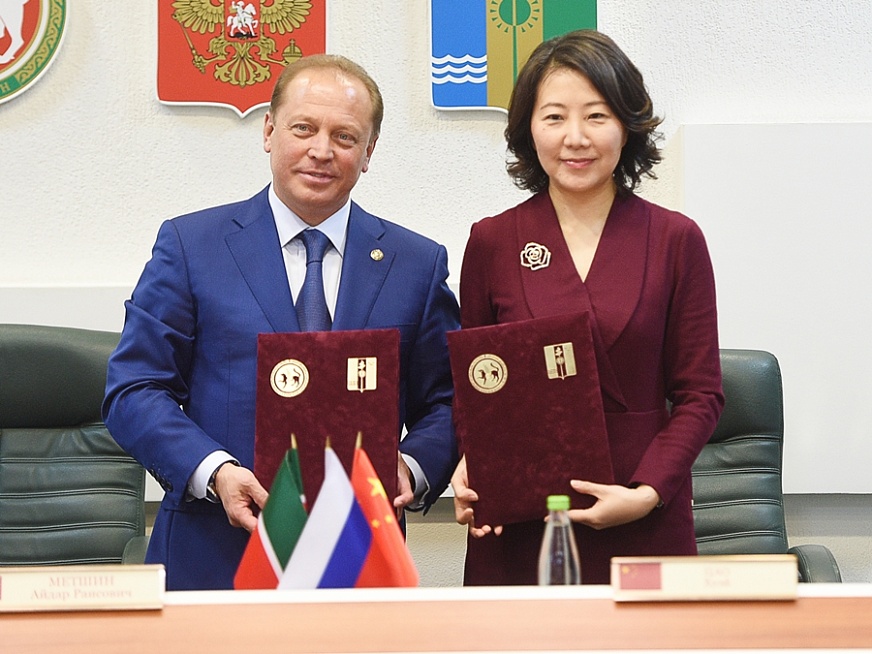 Кичә Түбән Кама муниципаль районы һәм Кытайның Мэйшань шәһәре арасында кардәшлек элемтәләрен урнаштыру турындагы килешүгә кул куелды. Документка Түбән Кама муниципаль районы башлыгы Айдар Метшин һәм Мэйшань шәһәренең Халык Хөкүмәте вице-мэры Цао Хуэй кул куйды.